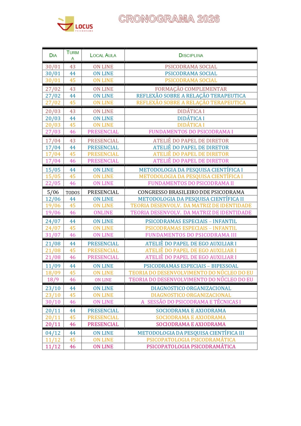 Cronograma 2026
